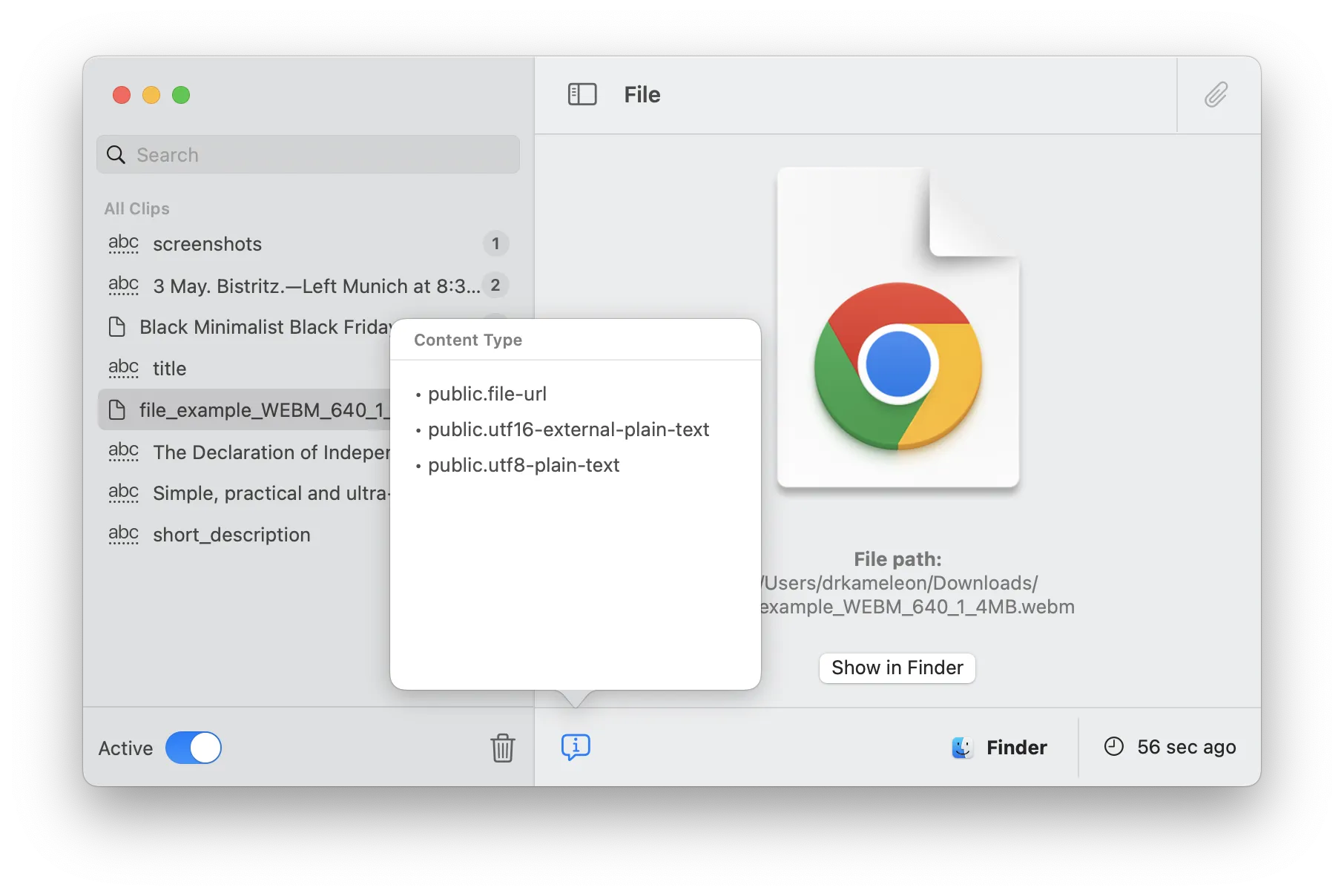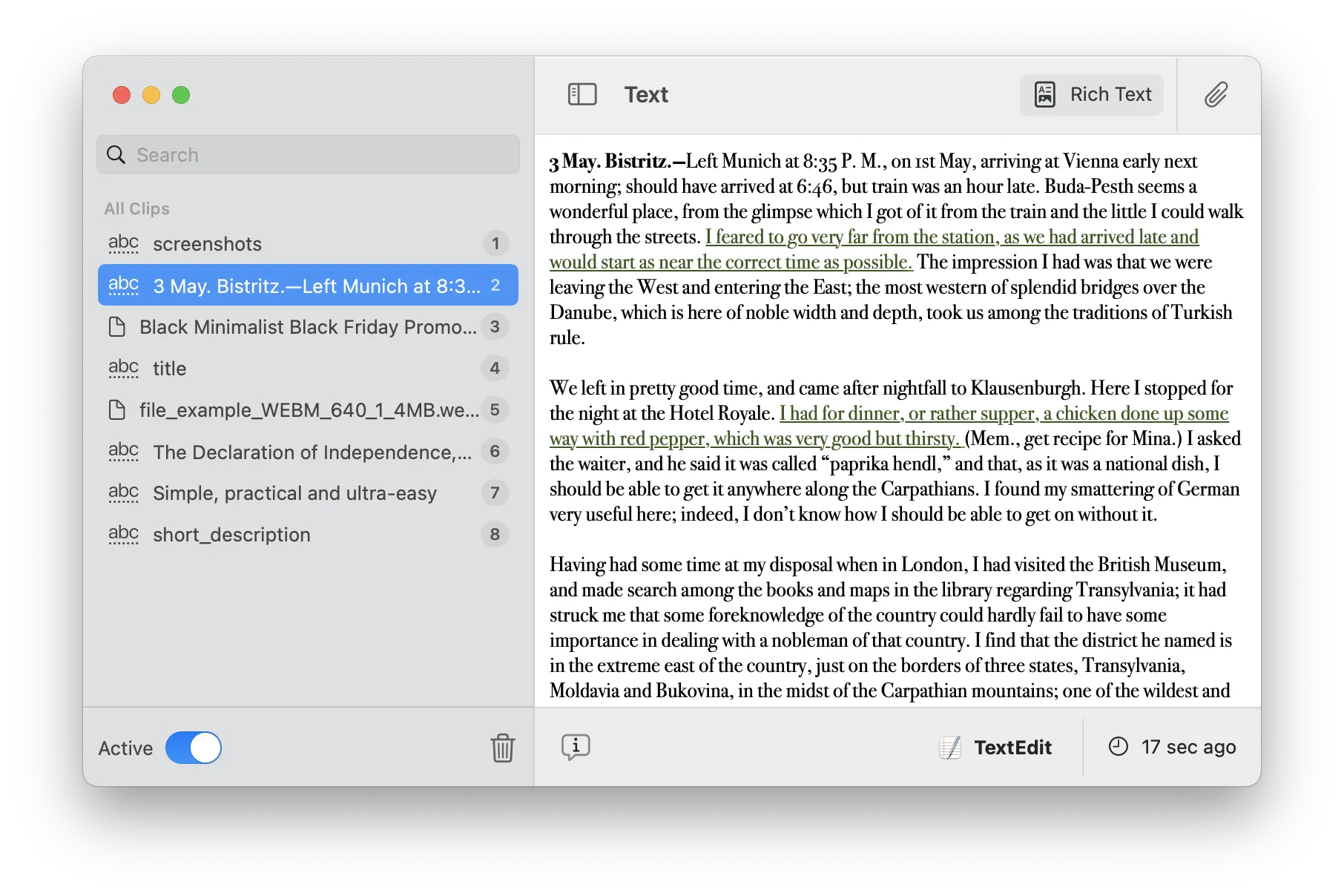 Whether you're copying text, or rich formatted text, or even files, no need to worry: AllClips supports it and even more