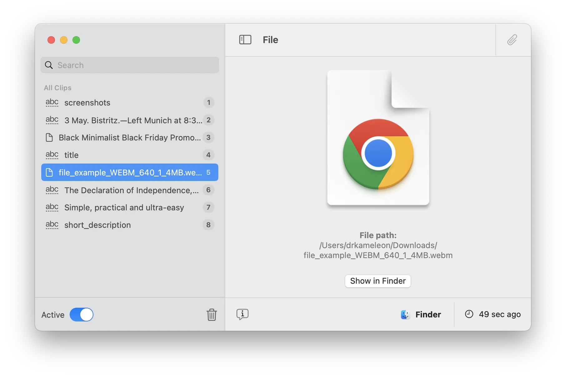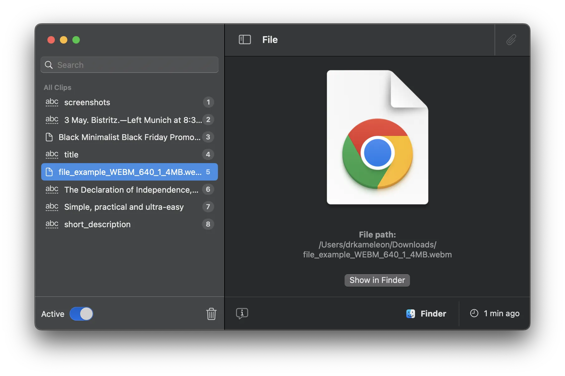 While the app is running, you may want to revisit your clipboard history and spot that one thing you had copied some time ago, but can't possibly remember what it was exactly.