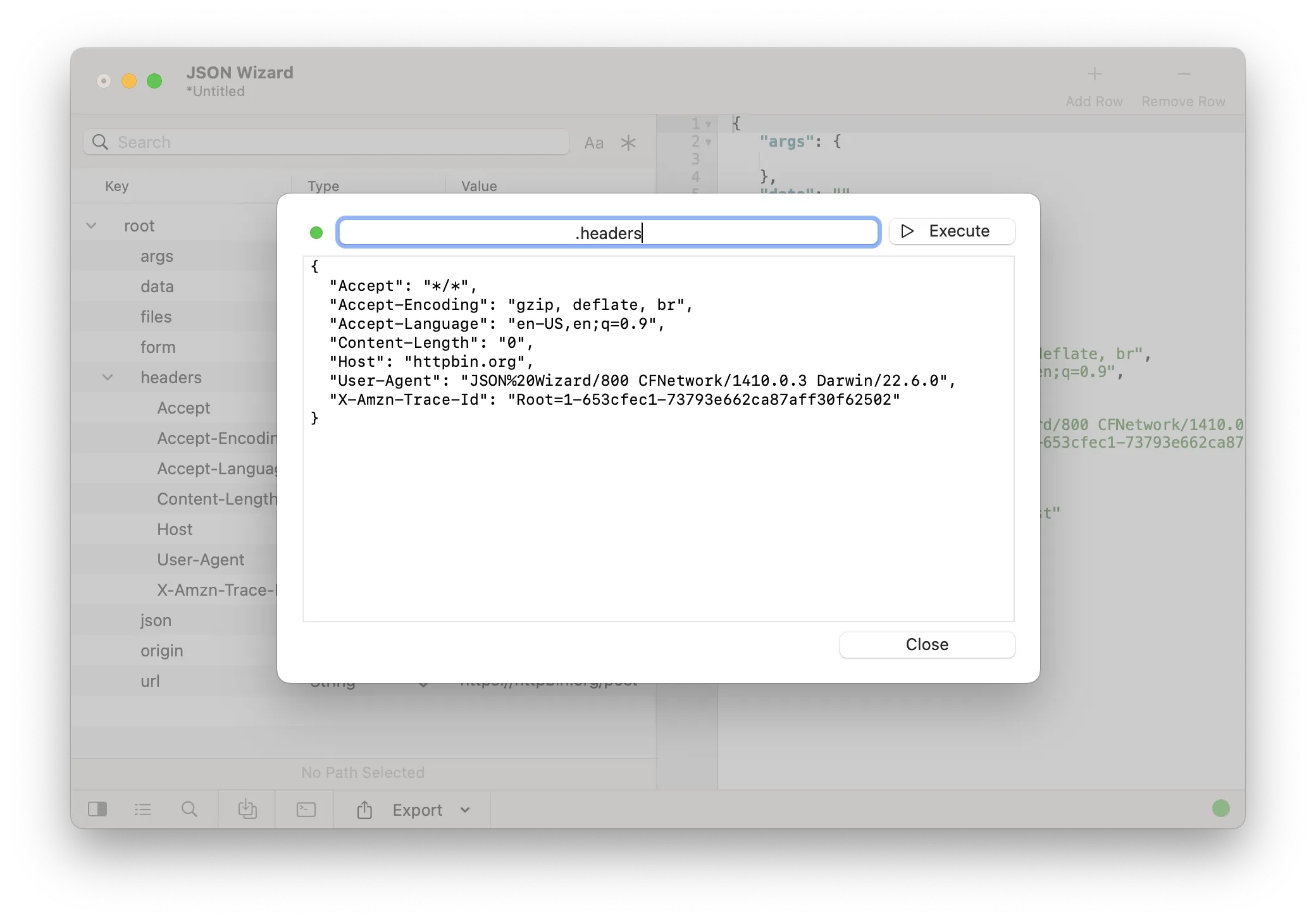 Import your JSON and work on the response directly. Do you want to access a network resource? You can actually perform a GET/POST request directly from within the app. It's as easy as that!