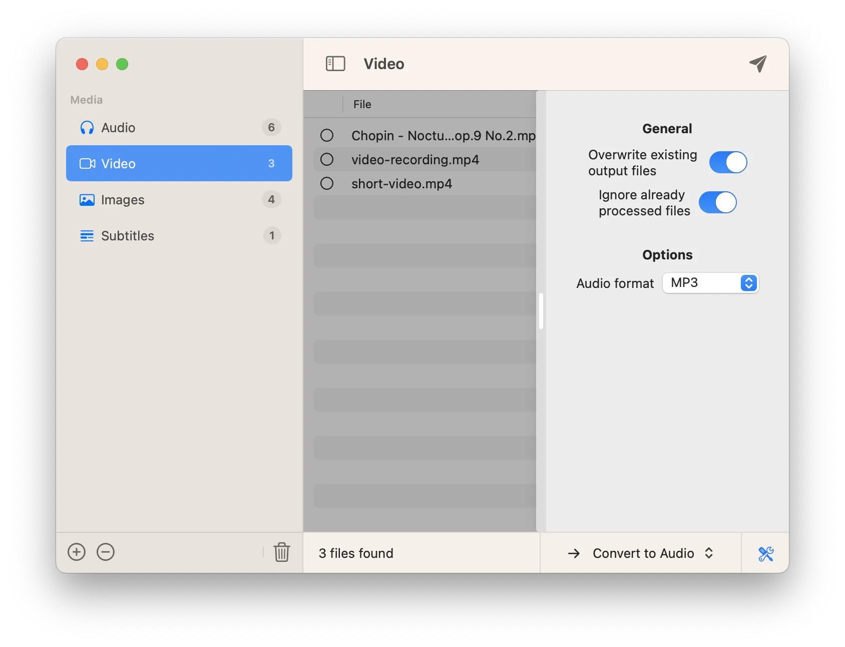 Choose what format you want to convert your files to; further options are available as well! ;-)